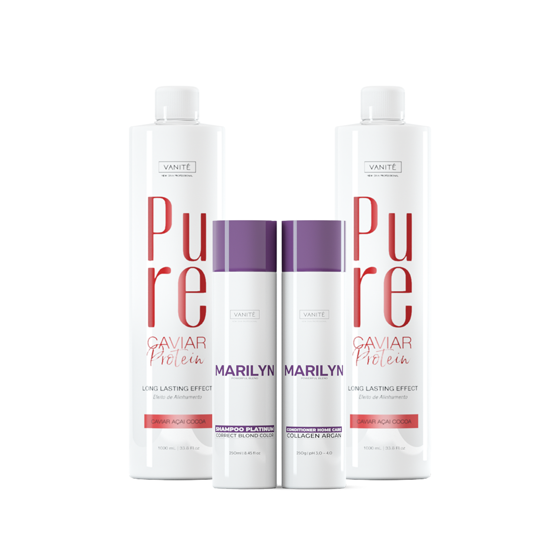 Imagine silky, frizz-free hair that stays smooth, shiny, and healthy for weeks. With the Pure Caviar Protein treatment combined with the nourishing power of the Marilyn Home Care Kit, you’ll achieve a professional result that not only transforms instantly but also lasts longer than ever.